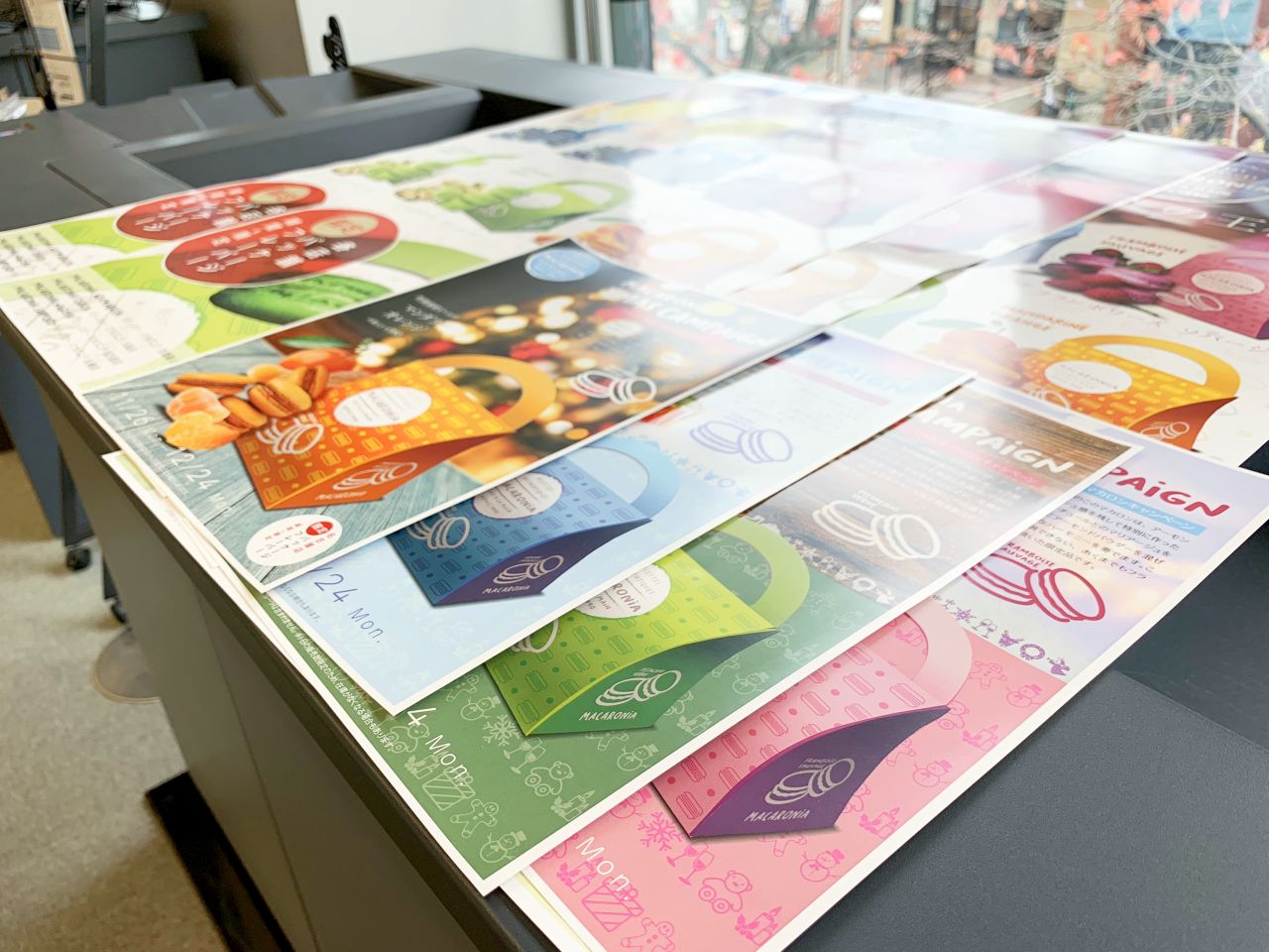 KOMORIのPODの最新機種であるインプレミアC101/C72の革新的な機能と、独自のCMSソフト K-カラーシミュレーター2 との連携について実演を交えてご紹介しました。実演ではクリスマスをテーマに、幅広い紙厚に対応するインプレミアC101でバリアブルなパッケージ(サンカード、K18.5㎏)とA4チラシ(オーロラコート、菊76.5kg)を出力、さらにインプレミアC72でとランチョンマット(レーザーピーチ、紙厚0.12mm)を出力し、手に取ってご確認いただきました。実演のオペレーションはDPS営業推進部DPS業務推進係 大浦が務めました。他にもクリアファイル、紙袋、長尺印刷のサンプルの実物をご覧いただきました。